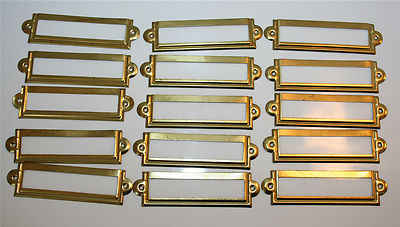 15 Brass VTG Antique Hardware File Cabinet Library Card Label Holders Frame NOS