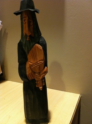 hand carved wooden figure of man and violin/ mandolin