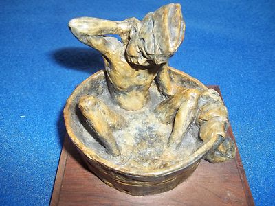 Title (ebay affiliate link): ANTIQUE Signed Tooled Bronze Sculpture Terry Mimnaugh Sailer In Tub 1933?