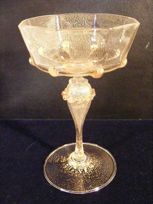 DELICATE, OLD VENETIAN GLASS WINE / CHAMPAGNE STEM - PINK & GOLD