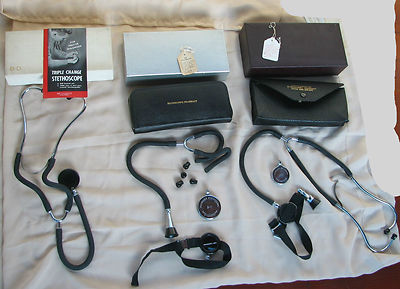 Title (ebay affiliate link): 3 B-D Fleischer Stethoscopes w/orig boxes & 2 pharm. cases, complete & parts