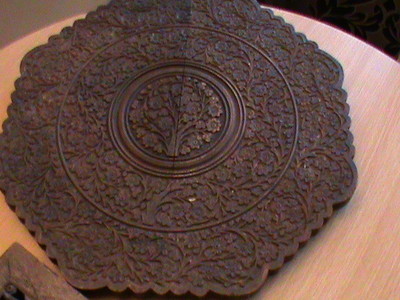 Title (ebay affiliate link): Antique Hand Carved Folding Tripod Panel Small Table Circa Early 1900's