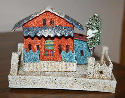 Title (ebay affiliate link): 1930s Older Village House. Shredded cellophane, Double Garden, Sponge Tree