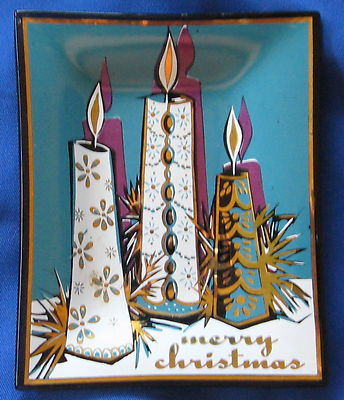 VINTAGE CHRISTMAS HOUZE GLASS ASH TRAY DISH