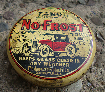 Title (ebay affiliate link): VINTAGE ZANOL ROUND TIN NO-FROST AUTO GLASS PROTECTOR w PICTURED MODEL-T