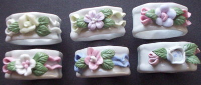 Title (ebay affiliate link): Capodimonte Porcelain Napkin Rings Holders Springtime Flowers