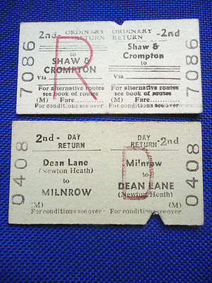 2 BRITISH RAILWAYS TICKETS BR SHAW & CROMPTON DEAN LANE NEWTON HEATH MILNROW ex