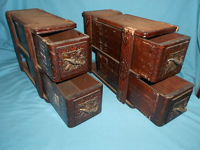 ANTIQUE SINGER TREADLE SEWING MACHINE DRAWER SET FURNITURE SALVAGE BRASS HANDLE