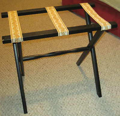 Title (ebay affiliate link): Lovely Vintage Luggage Rack Stand Folding Black Laquer EXC! Gold Ivory Straps