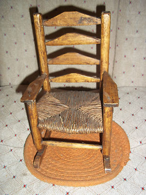 Title (ebay affiliate link): VINTAGE ANTIQUE PRIMITIVE RUSH SEAT LADDER BACK ROCKING CHAIR SMALL TOY? SAMPLE