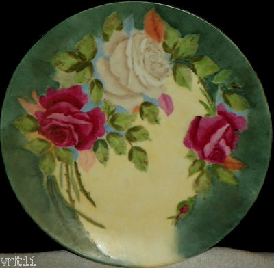 Title (ebay affiliate link): Vintage Hand Painted Red & White Rose German Artist Signed Plate Made in Germany