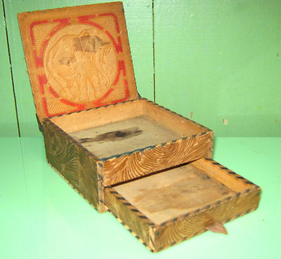 Title (ebay affiliate link): Antique Pyrography DRESSER BOX Burnt Wood Trinket ELEPHANT Inside & Out OLD Art