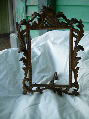 ANTIQUE CAST IRON GOLD GILT ART NOUVEAU PHOTO PICTURE FRAME FREE STANDING