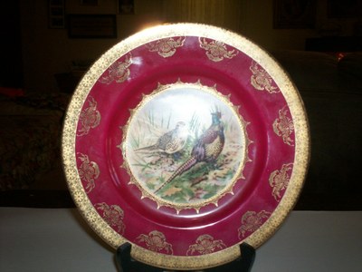 Title (ebay affiliate link): Vintage ST Bavaria Gold Gilded Game Bird Plate Pheasants Bee Hive Mark Excellent