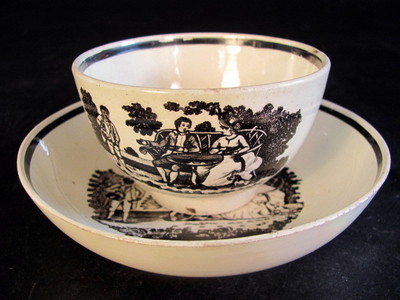 Antique Early 1820s Creamware Cream Ware Transfer Cup & Saucer