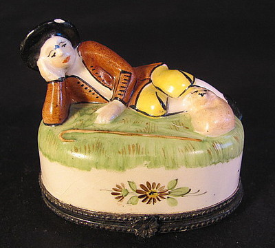 Title (ebay affiliate link): Antique French Faience Patch Trinket Box Shepherd w Lamb Orange Coat