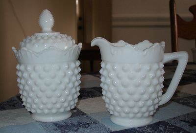 Title (ebay affiliate link): Vintage Fenton Hobnail Milk Glass Sugar Bowl w/Lid and Creamer all marked Fenton