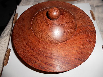 BeaUtIFul treen wooden bowl with knobbed lid - burled wood soft, NICE!