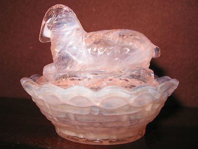pink rose milk white slag glass Lamb Sheep / salt cellar celt on nest basket dip