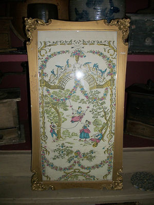 Title (ebay affiliate link): ViNTaGe / AnTiquE ~ FraMeD FaBriC PrInT w/ GoLD FraMe ~ NiCe & OLd