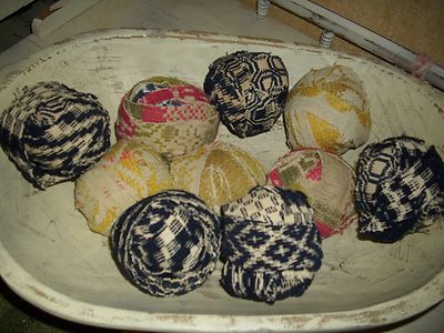 ANTIQUE HOMESPUN WOOL COVERLET RAGBALLS AAFA