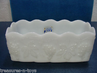 ANCHOR HOCKING MILK GLASS FIRE KING BOWL GRAPE LEAF PATTERN