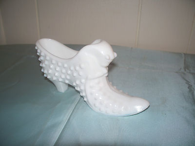 Title (ebay affiliate link): FENTON WHITE MILK GLASS HOBNAIL GLASS SLIPPER/SHOE GOOD CONDITION (2)