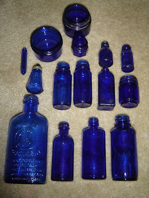 Title (ebay affiliate link): Lot of 15 Cobalt Glass Bottles Bromo Seltzer, Evening in Paris, Milk of Magnesia