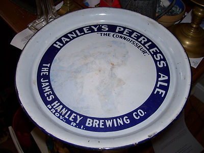 Title (ebay affiliate link): ENAMELWARE BEER TRAY HANLEY'S PEERLESS ALE"THE CONNOISSEUR" J.HANLEY BREWING CO.
