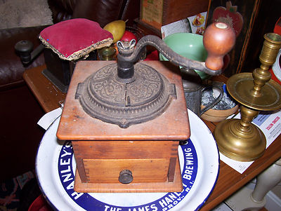 Title (ebay affiliate link): ANTIQUE COFFEE GRINDER WOOD AND CAST IRON, NR! EXCELLENT CONDITION