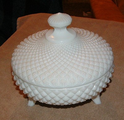 Title (ebay affiliate link): Westmoreland English? Hobnail milk-white candy dish, minor flaw, sold as is