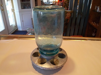 Title (ebay affiliate link): Chicken Feeder Old Blue Ball Jar Metal Base SPECIAL