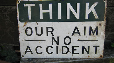 Old Porcelain Sign Miners safety THINK No Accident Prevention Advertsing Sign