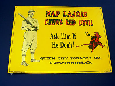BASEBALL NOSTALGIC TIN SIGN "NAP LAJOIE" CHEW RED DEVIL