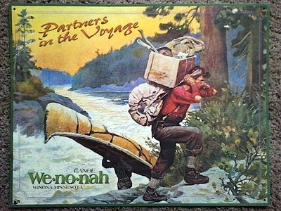Title (ebay affiliate link): WINONA MINNESOTA CANOE TIN SIGN, "PARTNERS IN THE VOYAGE"