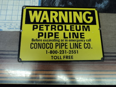 Warning Petroleum Pipe Line Conoco Porcelain DS Sign