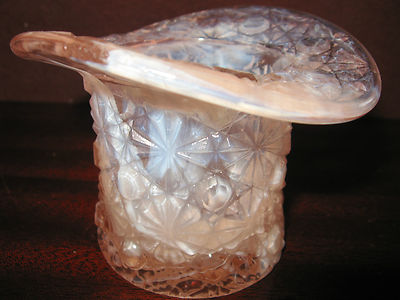 Pink and white milk slag glass tabletop toothpick match holder art top hat boyd