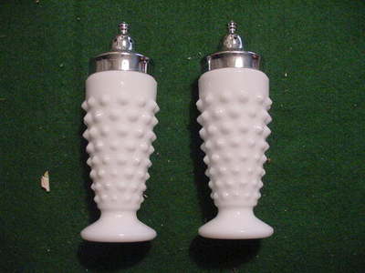 Pair of Fenton Milk Glass Hobnail Salt and Pepper Shakers