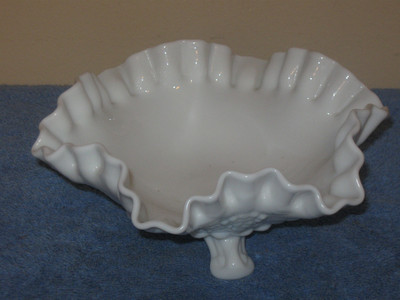 IMPERIAL MILK GLASS 3 TOED RUFFLED GRAPE LEAF CANDY DISH