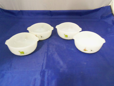 LOT OF 4 FIRE KING JOHNNY HART BC MILK GLASS CEREAL BOWLS