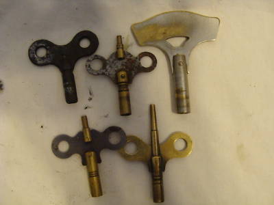 LOT OF 5 ANTIQUE CLOCK KEYS PARTS NO RESERVE