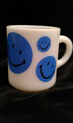Title (ebay affiliate link): Vintage Milk Glass Coffee Mug Blue Have A Nice Day Smiley Faces