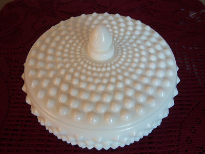 Vintage Fenton White Hobnail Milk Glass Covered Candy Jar / Bowl / Dresser Jar