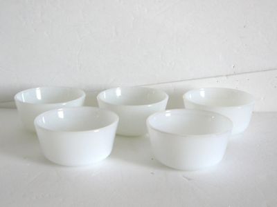Title (ebay affiliate link): 5 FIRE KING WHITE MILK GLASS CUSTARD CUPS, RAMEKINS ,BAKING DISHES