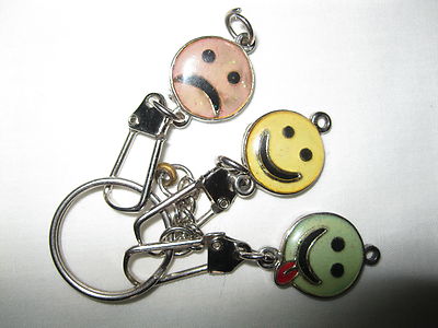 Title (ebay affiliate link): Vintage Retro Happy Sad Smiley Face Silver Keychain Clip Yellow Blue Pink Tongue