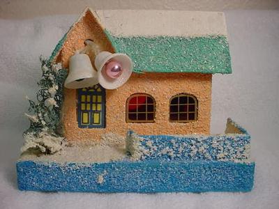 Title (ebay affiliate link): Vintage Cardboard Lighted Church House Christmas Ornament Excellent Old Japan