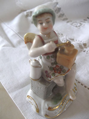 LOVELY CAPODIMONTE SMALL FIGURE CHILD WITH WINGS GRINDING COFFEE