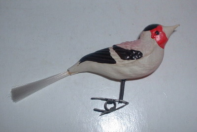 early glass clip on BIRD ORNAMENT spun glass tail nice paint