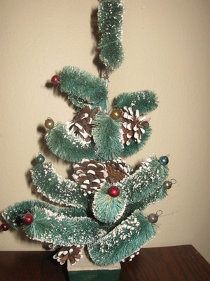 Vintage Bottle Brush Tree Mercury glass Star & Ornaments 14"