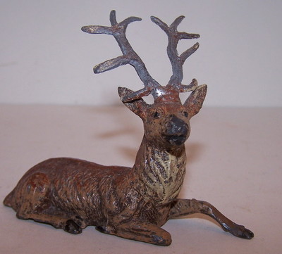 Vintage Christmas German Iron Putz Reindeer Deer Laying Down